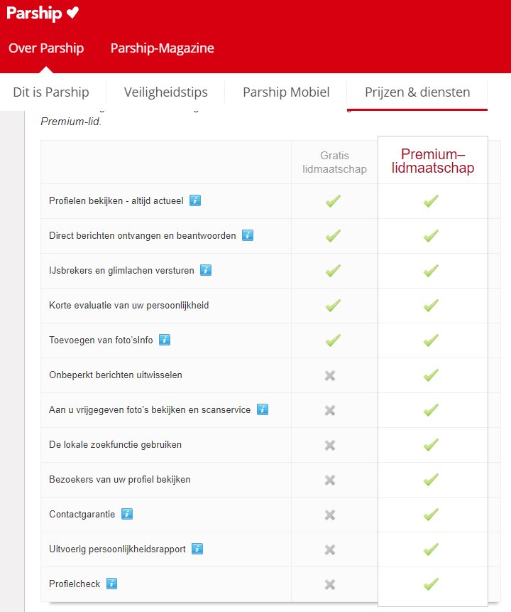 Bij Parship kun je een Preimium-lidmaatschap afsluiten met de volgende betalingsmiddelen: iDeal, Credit Card en PayPal.